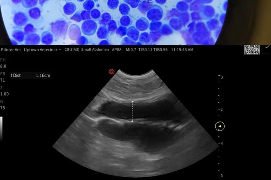 Ultrasound is a non-invasive imaging tool that allows us to view your pet’s internal organs in real time. It is commonly used to evaluate abdominal structures such as the liver, kidneys, bladder, intestines, and spleen. In other situations, ultrasound may also be used to assess the heart or look for fluid within the chest or abdomen. This imaging tool provides detailed information about soft tissues and is often used alongside other diagnostics to help guide diagnosis and treatment planning.